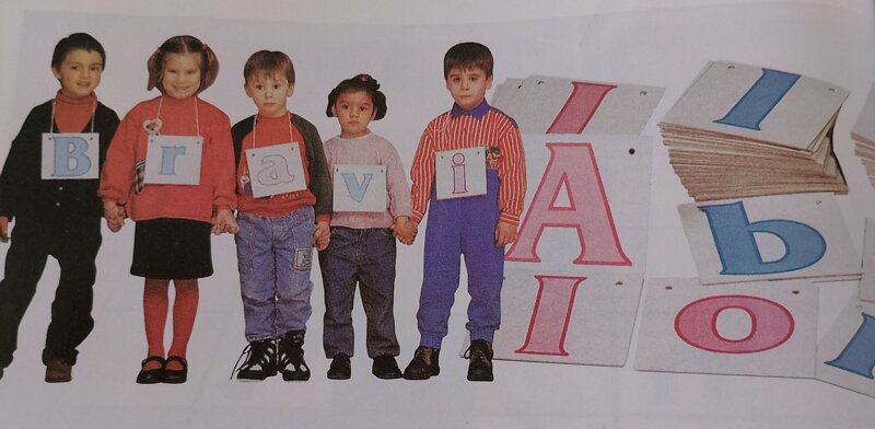 Art. 0057310 - Mega alfabeto mobile. Contenuto: carte formato cm. 16x16 accoppiate e stampate fronte e retro. Resistente filo di nilon per appendere le carte, Età 3-6 anni. Le carte giganti contenute nel gioco riportano le lettere dell'alfabeto, che i bambini possono appendere al collo grazie al filo di nilon per formare, tutti insieme, tante parole, In questo modo imparano l'alfabeto e sviluppano le loro capacità di coordinazione motoria. Obbiettivi didattici: imparare l'alfabeto. Riconoscere le consonanti e le vocali. Formare prime parole. Sviluppare le capacità di orientamento nello spazio e di coordinazione motoria.