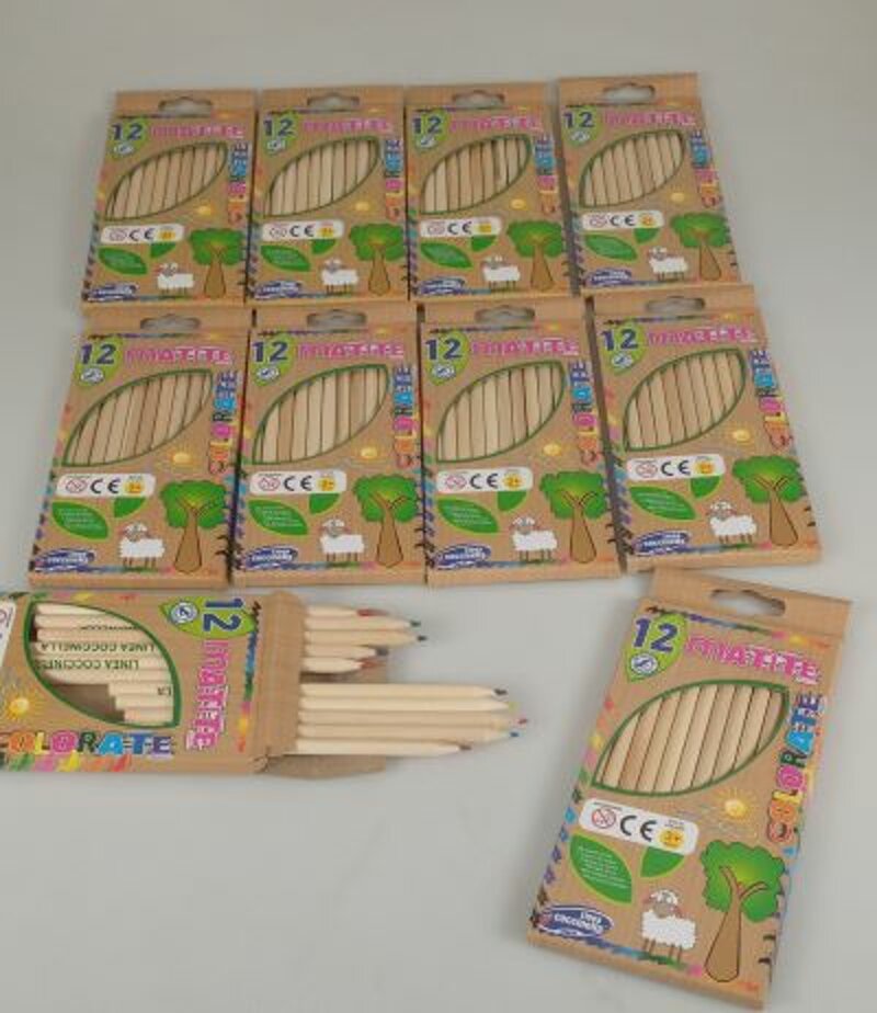 Art. E000057 - Pastelli colorati 12 pezzi, fusto in legno naturale. Scatola formata da 10 confezioni.
